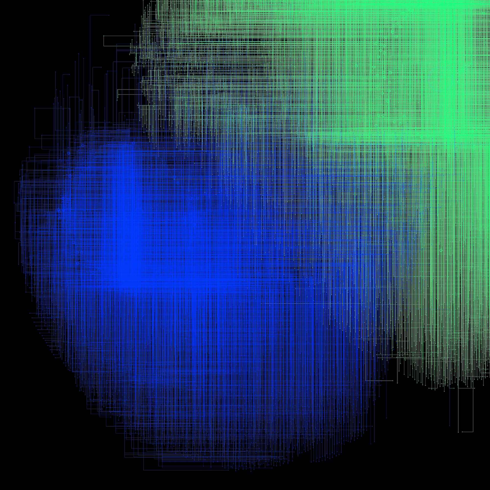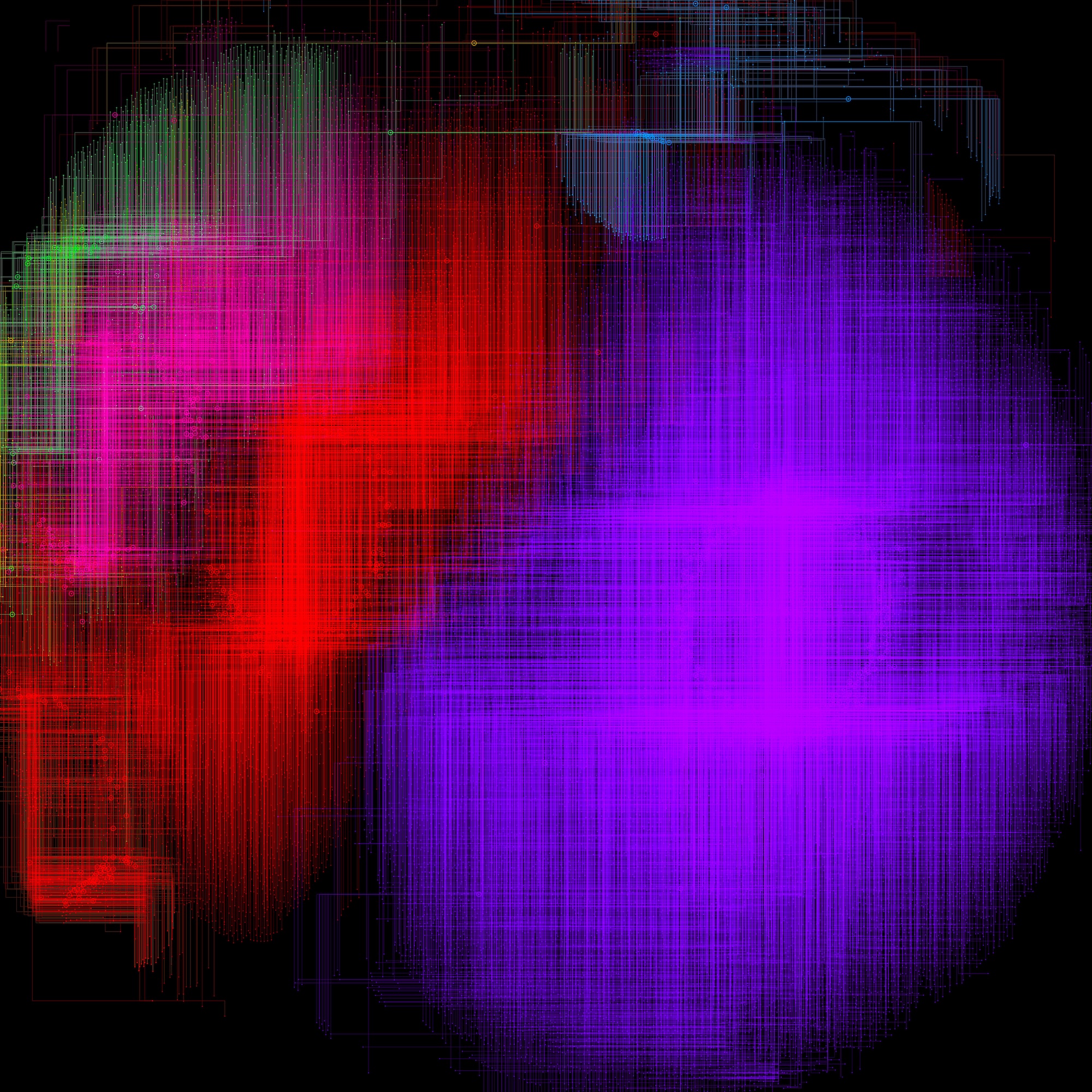 Mass circuits. The GENESIS wallets did not sit still. Connection quickly extended beyond the first distribution, activity clustered here and there, mixing ether into new places, new hubs, exchanges, mysterious places. "Curious Circuits" mines a history using visuals from raw chain data, millions of tidbits rendered as curious circuits. Issuance: There will be 12 curious circuits. JPEGs stored on Arweave, brief descriptions in each piece. First collectors receive an interactive interface allowing the owner to explore the early ecosystem's circuitry.